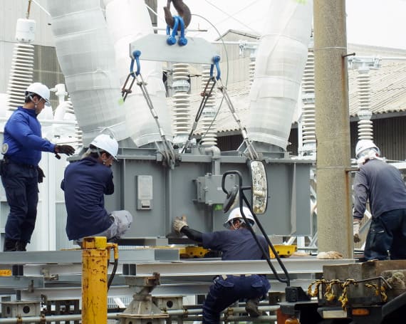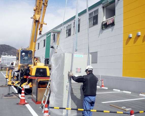 重量物運搬・撤去搬出・搬入据付、産業機械・工作機械器具設置、製造工場や食品工場他工場のライン替え・レイアウト変更・コロ引き、工場や店舗の引越、空調機冷凍機等の入替工事を行っています。